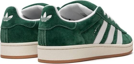 Donkergroen, cloud wit, gebroken wit, kalfssude, kenmerkend 3-Stripes logo, ronde neus, vetersluiting aan de voorkant, logo op het hielstuk, binnenzool met merk en platte rubberen zool.