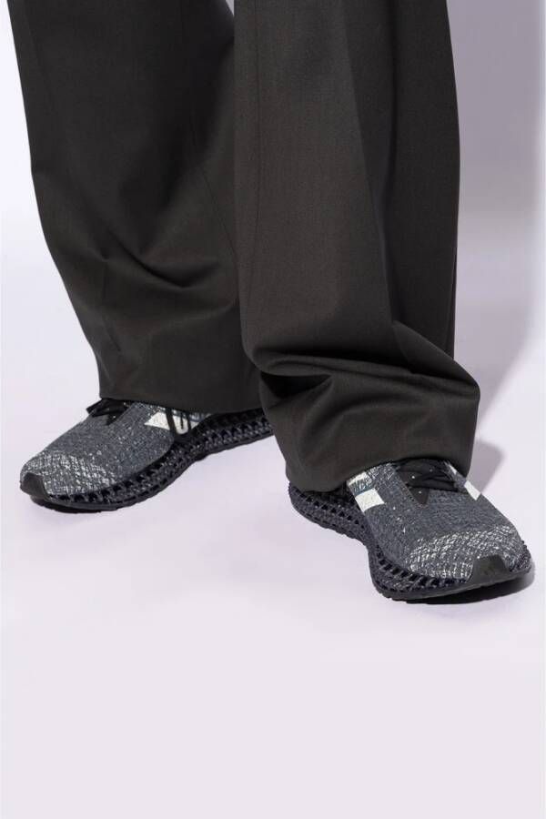 Zwarte en grijze 4Dfwd X Strung lichtgewicht hardloopschoenen van Adidas Performance. Het bovenwerk is gedeeltelijk gemaakt van gerecyclede materialen met een naadloze constructie en speciale textuur. Zittend op een zwarte Continental rubberen zool, toont dit model met vetersluiting het logo van het merk, drie strepen en een 3D-geprinte tussenzool. Zoolhoogte: 1, 5 cm Zoolhoogte op het hoogste punt: 4 cm
