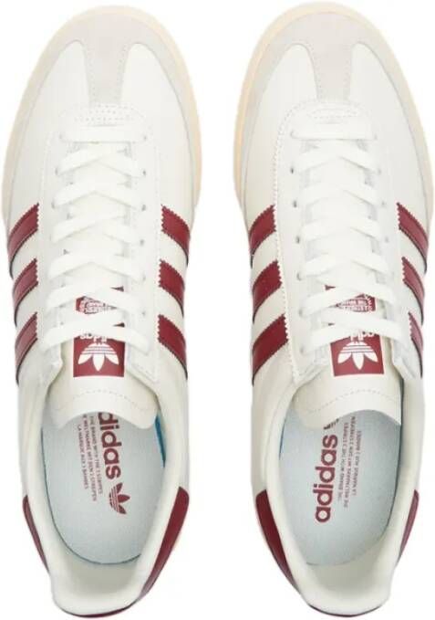 Witte, bourgondische en crème `Jeans` sneakers van Adidas Originals. Gemaakt van leer en synthetische materialen, zit dit model met veters op een crème rubberen zool en toont het een logo-applicatie en de kenmerkende drie strepen van het merk. Zoolhoogte: 2 cm Zoolhoogte op het hoogste punt: 2 cm