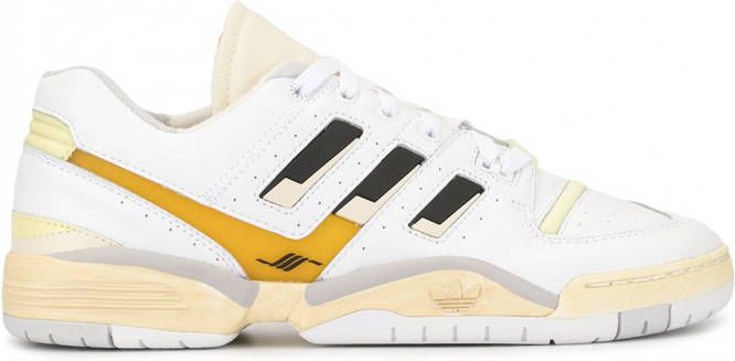 Ronde neus, geribbelde rubberen zool, vetersluiting aan de voorkant, binnenzool met logo en kenmerkend trefoil logodetail.