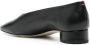 zwart kalfsleer gladde korrel decoratieve stiksels aan de achterkant vierkante neus leren binnenzool met logo lage blokhak leren buitenzool slip-on stijl