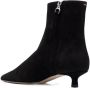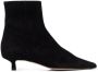 Zwart, kalfssude, puntige neus, ritssluiting aan de zijkant, enkellengte en kitten-heel.