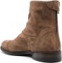 camelbruin sude vlakken ronde neus leren binnenzool met logo platte rubberen zool enkellengte drukknoopsluiting aan de achterkant