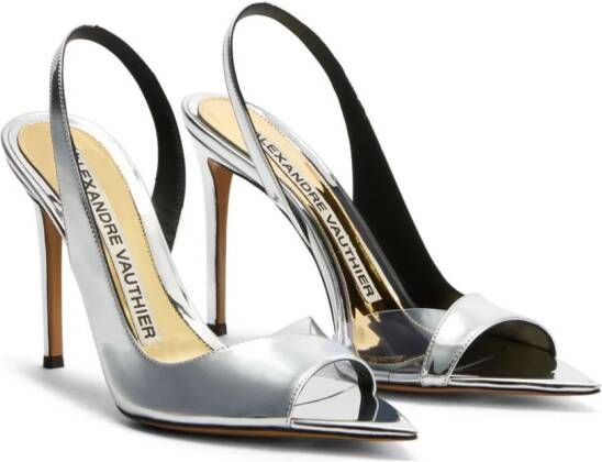 zilverkleurig gespiegelde afwerking open neus enkel teenbandje slingback bandje slip-on stijl 105 mm stiletto-hak leren binnenzool met logo leren buitenzool