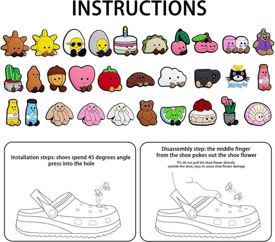 Allecto Plus Decoratieve pv accessoires voor crocs en klompen 30 schattige kleine uitdrukkingsschoenbedels