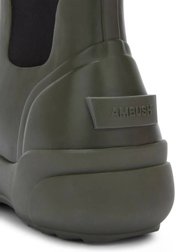 donkergroen/zwart logo-relif aan de achterkant vlakken ronde neus slip-on stijl enkellengte chunky rubberen zool