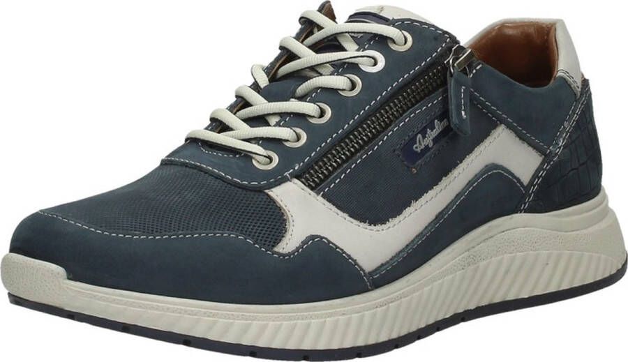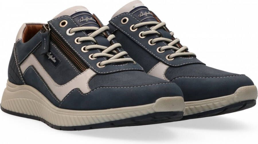 Australian sportieve lage heren sneaker. Deze veterschoen van Australian heeft zowel een veter als een ritssluiting voor extra draaggemak. De modelnaam is Hatchback en het artikelnummer is: 15.1607.01-SD5. De kleur is blauw in combinatie met licht grijs accenten. Het materiaal is nubuck leer met een leren voering en een leder uitneembaar voetbed. Deze sneaker heeft een nieuwe sportieve runnerzool van thermoplastisch rubber waardoor de zool flexibel en stevig is.