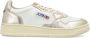 Upgrade je sneakercollectie met deze Autry sneakers voor dames. Gemaakt van echt kalfsleer met metallic details, hebben deze sneakers een geperforeerde ronde neus, een tonale logolabel op de tong en een contrasterende geborduurde logostofinzet aan de buitenkant. De gewatteerde kraag en versterkte hiel met een contrasterende leren logoinzet zorgen voor extra comfort en ondersteuning. Deze sneakers worden afgesloten met een vetersluiting aan de voorkant voor een goede pasvorm
