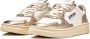 Autry Aulw Wb 16 sneakers in wit leer met gouden details. Kenmerken: · Leren bovenwerk. · Katoenen veters. · Geperforeerde neus. · Gewatteerde enkelkraag. · Geborduurd Autry MEDALIST-logo op de tong. · AUTRY-logo aan de zijkant met Amerikaanse vlag. · In reliëf gemaakt logo op de achterkant. · 2 cm leren binnenzool. · Voering van katoen en leren pluche. · Rubberen zool. · Autry schoenentas met logo inbegrepen. - Europese maatvoering. Waarom WE HET Geweldig Vinden Bij Frank Store zijn we dol op Autry sneakers omdat dit beroemde model uit de jaren 80 tijdloos is en kan worden gecombineerd met elke outfit. We hebben ze al geprobeerd en kunnen je verzekeren dat ze super comfortabel zijn!