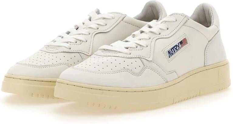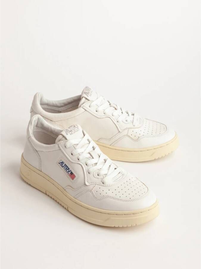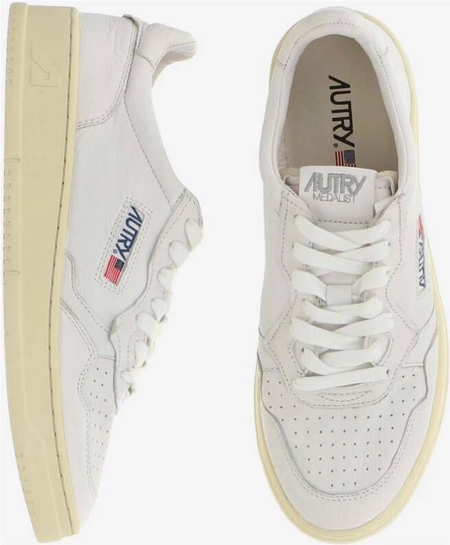Witte 'Medalist' sneakers van Autry. Gemaakt van leer, dit paar met veters zit op een crmekleurige rubberen zool en heeft een ruw afgewerkte tong, logo en perforaties aan de voorkant. Zoolhoogte: 2, 5 cm Zoolhoogte op het hoogste punt: 3, 5 cm