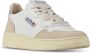 Witte en beige 'Medalist' sneakers van Autry. Gemaakt van leer en suède, dit veterschoenmodel rust op een crèmekleurige rubberen zool en toont een ruw afgewerkte tong, logo-details, perforaties aan de voorkant en een blauwe hielkap. Zoolhoogte: 2, 5 cm Zoolhoogte op het hoogste punt: 3, 5 cm