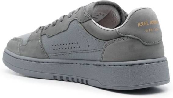 Grijs, kalfssude, design met vlakken, geperforeerd detail, logo-relif aan de zijkant, logopatch op de tong , ronde neus, vetersluiting aan de voorkant, binnenzool met merk, logo op het hielstuk en platte rubberen zool. . .