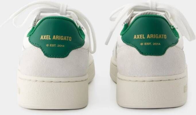 Upgrade je sneaker game met deze witte Axel Arigato Dice Lo lage sneakers. Speciaal ontworpen voor vrouwen, hebben deze sneakers een combinatie van kalfsleer en sude op het bovenwerk, wat zorgt voor een luxe en stijlvolle uitstraling. Je vindt ook een goudkleurig logo-stempel aan de zijkant en een reliflogo op de zool, wat de aandacht voor detail van het merk laat zien. De groene hielkap met een goudkleurig logo en grijze sude details op het bovenwerk tillen het algehele ontwerp verder op. Gemaakt van een combinatie van kalfsleer, kalfssude/nubuck, gerecycled polyester en rubber, zijn deze sneakers niet alleen modieus maar ook gemaakt om lang mee te gaan