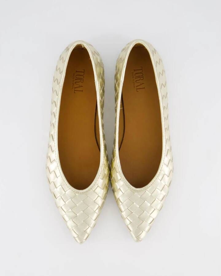 Shop Gouden Geweven Puntige Ballerina Schoenen van Toral in Yellow bij Miinto. Wanneer u niet tevreden bent, kunt u uw items gratis retourneren binnen 14 dagen