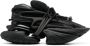 Zwart, kalfsleer, logoprint aan de zijkant, logo-relif aan de zijkant, vetersluiting aan de voorkant, binnenzool met merk, chunky rubberen zool en ronde neus.