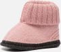 Bergstein Cozy, pantoffels met gebreide omslagboord voor meisjes in de kleur roze. Deze pantoffels komen uit de Bergstein all season collectie, zijn gemaakt van wol. Op de zijkant een klein merklabel met de tekst BERGSTEIN. De pantoffels hebben een voering van zuiver scheerwol en zijn dus heel lekker warm! De zool is van supersterk natuurrubber en gaat eindeloos lang mee