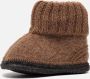 Bergstein Cozy pantoffels met gebreide omslagboord voor jongens en meisjes in de kleur bruin. Deze pantoffels komen uit de Bergstein all season collectie en zijn gemaakt van wol. Op de zijkant een klein merklabel met de tekst BERGSTEIN. De pantoffels hebben een voering van zuiver scheerwol en zijn dus heel lekker warm! De zool is van supersterk natuurrubber en blijft eindeloos mooi!