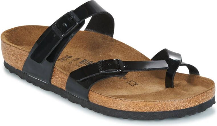 Sierlijk en modern! De BIRKENSTOCK teenslipper Mayari is door zijn vloeiende uitstraling een echte must have en combineert design met comfort. Het bovenmateriaal bestaat uit het huidvriendelijke en slijtvaste synthetische materiaal Birko-Flor® met een glanzende laklaag.Anatomisch gevormd kurk-latex voetbedBovenmateriaal: Birko-Flor® met laklaagDekzool: suèdeZool: EVADetails: twee banden met elk een individueel verstelbare gesp van metaal; teenlusMade in Germany