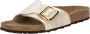 Ontdek de Catalina Cushion Buckle Slides van Birkenstock, ontworpen voor elegantie en comfort met een brede band en gouden gesp. Belangrijkste kenmerken: Crme | Beige | Leer | Verkleinde voetbedbreedte | Enkele brede band | Gouden gesp | Afmetingen en pasvorm: Ongevenaard comfort |