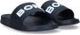 Deze donkerblauwe lichtgewicht badslipper KNOX MLD K komt uit de collectie van het merk BOSS KIDS. Dit model heeft een glad rubberen band met oversized wit merkopdruk en een rubberen licht voorgevormd voetbed. Het profiel onder de loopzool zorgt voor een goede grip.