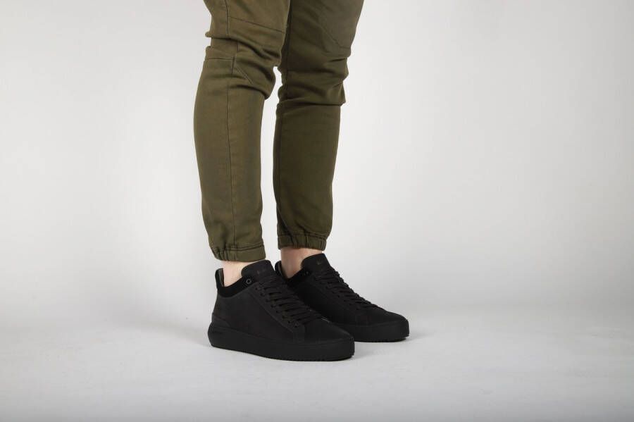 De Blackstone YG23 Nero voor heren in geheel zwart. Deze halfhoge herenschoen bevat een buitenzijde gemaakt van nubuckleer en heeft een premium leren voering. De YG23 beschikt over een uitneembaar voetbed en is verder nog voorzien van een zwart leren merk detail op de achterkant.