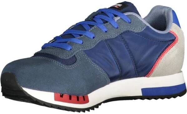 Blauer sneakers voor heren met vetersluiting, contrastdetails, applicatie en logo. Gemaakt van textiel