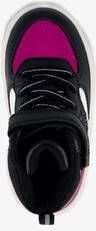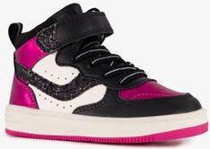 Hoge, zwarte sneakers voor meisjes. Gemaakt van imitatieleer, een binnenwerk van textiel en een rubberen zool. De sneakers hebben elastische veters met klittenbandsluiting en een hiellusje voor een makkelijke instap. Het comfortabele voetbed is gemaakt van textiel en is uitneembaar. Voorzien van witte/roze accenten op het bovenwerk en glitter.