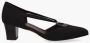Opengewerkte pumps voor dames van het merk Brunate. Deze zwarte damesschoen 50688 heeft een upper van zachte veloursstof. De binnenkant is in leer uitgevoerd en voorzien van een vast voetbed. Bijzonder is de ringapplicatie met stretchbandjes op de wreef. De glanzende hak heeft een hoogte van ongeveer 5 cm. De leest is spits toelopend. Kleur: zwart. (Nero)