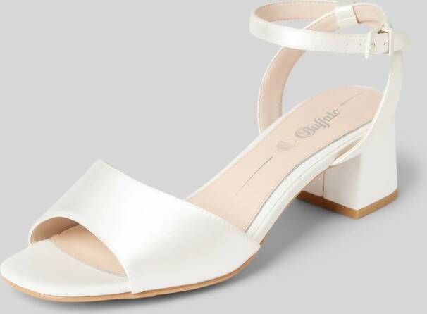 Damessandaaltje van Buffalo;Satijn;Enkelbandjes met doornsluiting;Brede band;Blokhak;Rubberzool;Binnenzool van leer;Hakhoogte bij maat 40: 5 cm