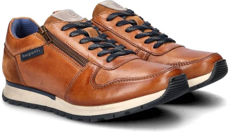 Deze sneaker van Bugatti heeft een buitenkant van leer en een binnenkant van textiel. De sneaker sluit met veters en een rits, de zool is plat en gemaakt voor dagelijks gebruik