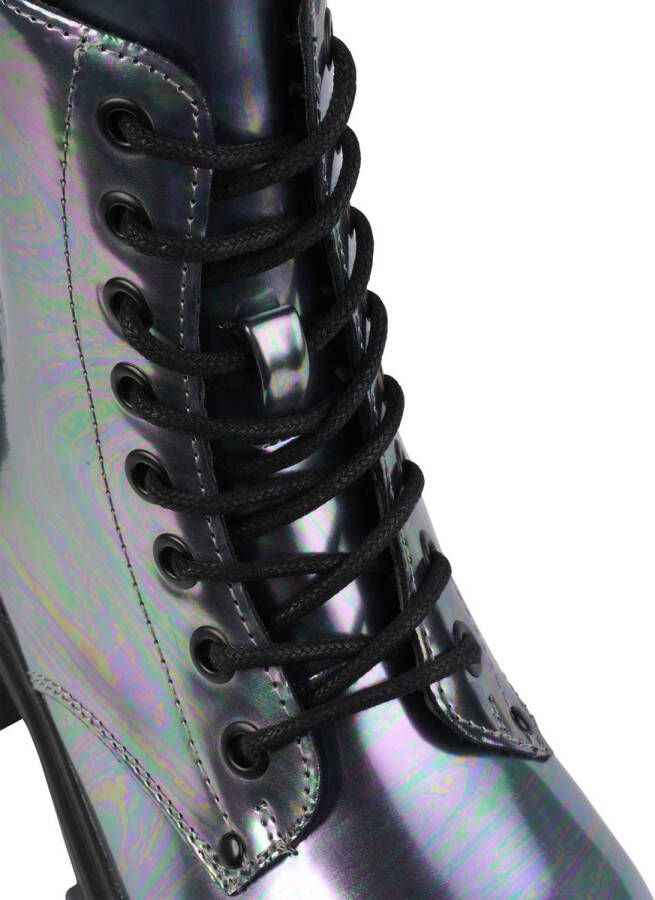 Deze gave veterboot AAF504 voor stoere meiden komt uit de collectie van het merk BULLBOXER. Dit item is gemaakt van metallic lederlook met een gave, holografische print in de kleuren roze en groen. Leuke details zijn de zwarte hiellus, de zwarte veterringetjes en de grove zool. De schoen heeft een vast voetbed en het binnenwerk is gemaakt van textiel en lederlook. De chunky zool creert een stoere look, terwijl hij tegelijkertijd voor veel grip en stabiliteit zorgt. Daarnaast schiet je de schoen snel en eenvoudig aan dankzij de handige ritssluiting aan de zijkant. De schachthoogte is 14 centimeter, gemeten bij maat 35. Steel de show met deze eyecatcher!