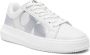 wit/zilverkleurig kalfsleer gladde korrel vlakken met colourblocking metallic finish logopatch op de tong logoprint aan de zijkant ronde neus veters aan voorkant binnenzool met logo platte rubberen zool met logo-relif