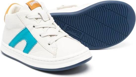 Optisch wit, veelkleurig, leer, gerecycled polyester, zijvlakken verfraaid met logo, logopatch op de tong , binnenzool met merk, ronde neus, vetersluiting aan de voorkant en platte rubberen zool. .