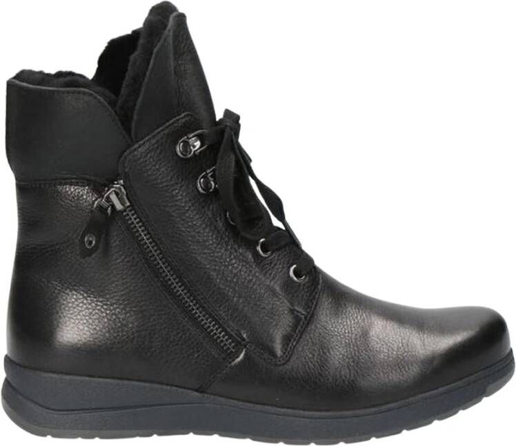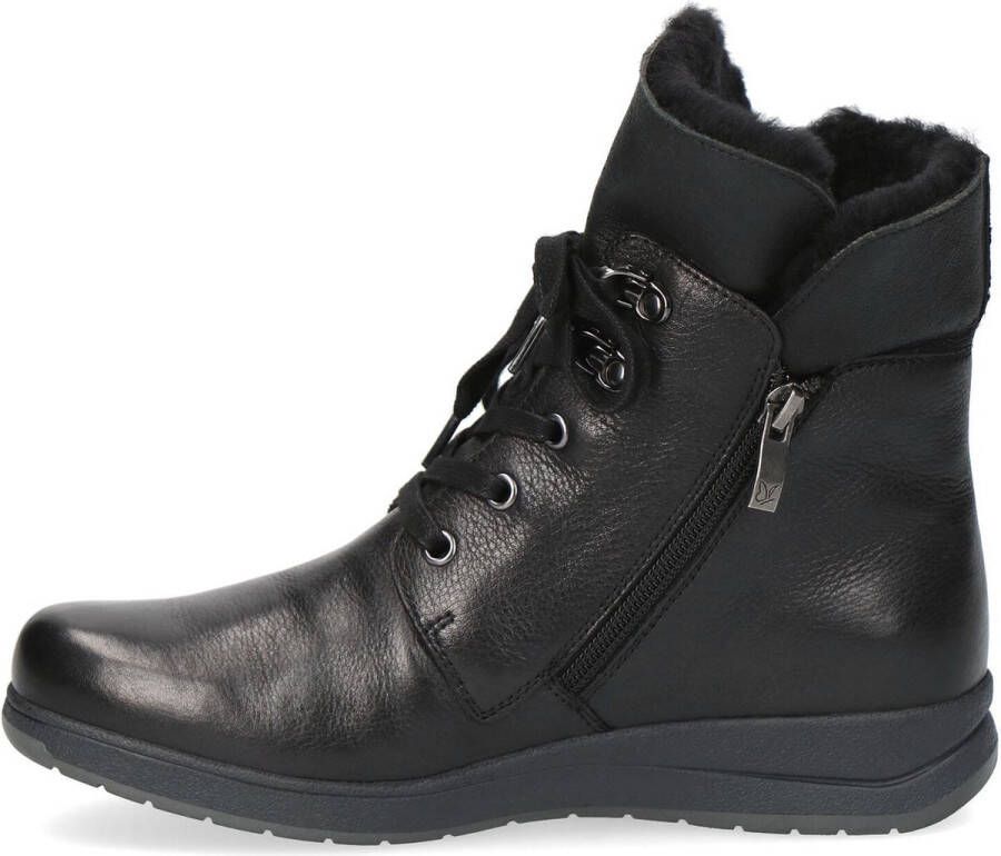 De hot-lined veterlaars van het merk Caprice is gemaakt van een materiaalmix van leer en bont Het voetbed is afneembaar.