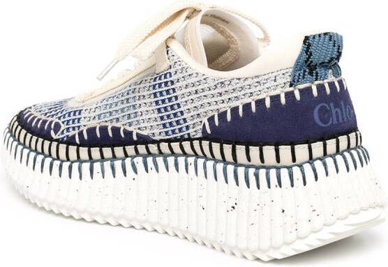 Marineblauw, veelkleurig, mesh vlak, afgewerkt detail, ronde neus, logo op het hielstuk, dubbele ritssluiting bij de hiel, binnenzool met merk, veters aan voorkant en geribbelde rubberen zool.