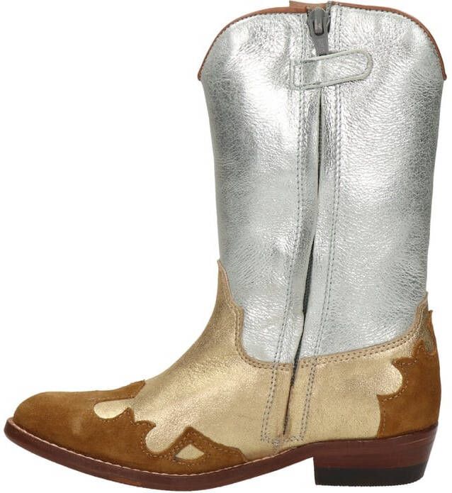 Wauw, deze cowboylaarsjes zijn helemaal het einde! Dit mooie model 20794 is van het merk Clic! Hij is uitgevoerd in zilverkleurig leer aan de schacht, goudkleurig leer op de voorvoet en cognackleurig suède op de neus en hiel. Leuke cowboyaccenten zijn de puntige neus, de goudkleurige aantreklus aan de zijkant en de afgeronde schacht. De voering en het vaste voetbed is gemaakt van leer wat voor een fijn comfort zorgt. De rubberen zool is afgewerkt met een stiksel in de zoolrand waardoor hij extra stevig is en wel tegen een stootje kan. De loopzool heeft een fijn profiel voor genoeg grip tijdens het rennen en spelen. De schachthoogte is 23 centimeter en een extra leuk detail is het merkreliëf aan de zijkant. Zie jij jouw kleine meid al rondlopen met deze schattige en stoere laarsjes aan?
