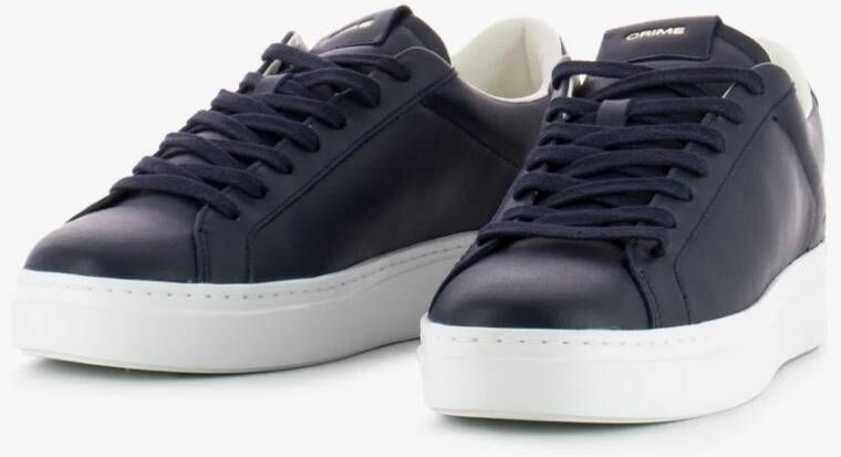 Upgrade je stijl met deze Crime London sneakers voor heren. Gemaakt in Itali met hoogwaardig donkerblauw kalfsleer, deze sneakers hebben een bijpassende hiel, wit leren label met logo en blauwe katoenen veters. De leren en stoffen voering zorgen voor comfort, terwijl de Extralight witte zool een moderne touch toevoegt. Valt normaal qua maat. Productcode: 16806Pp 5.40