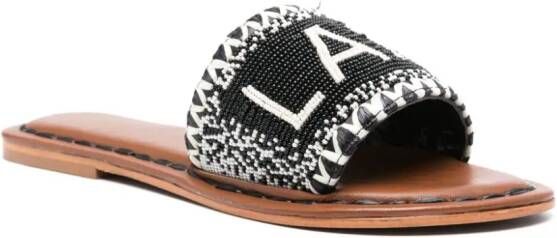 zwart/wit kalfsleer ronde open neus voorband met kralen versiering leren binnenzool met logo leren zool slip-on stijl Dit item wordt verkocht met een beschermhoes.