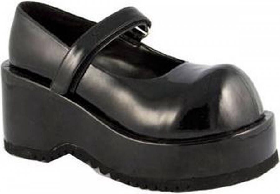 Demonia. Een mat zwarte schoen met een bandje over de voet. Plateau zool 3, 25 inch = 8.8 cm. --- Gothic laarzen, schoenen, pumps, kisten, boots, metal, rock