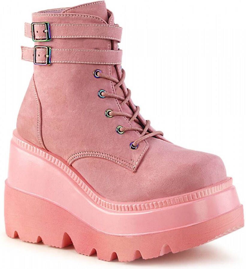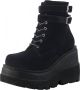 Demonia. Zwarte fluwelen plateau enkellaarzen met dubbele riempjes.