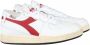 Sneakers van Diadora. Dit model heeft rode stiksels aan de rand, uitneembare binnenzool, gewaxte veters. Afmetingen: Hoogte zool: 2 cm Materiaal: Buitenkant: 100% leer; Voering: leer, stof; Zool: 100% rubber Productstijl-ID: 176282Mibasketrowcut Deze beschrijving is automatisch vertaald.