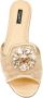 Bianca flat sandals van Dolce & Gabbana voorzien van open neus, leren voetbed, bloemenkant patroon, leren zool en met kristallen bedrukt.