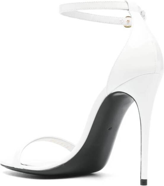 wit kalfsleer lakleren afwerking ronde open neus smalle band leren binnenzool met logo enkelbandje met gespsluiting