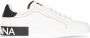 wit/zwart leer contrasterende stiksels contrasterend vlak logo op het hielstuk logopatch op de tong ronde neus veters aan voorkant platte rubberen zool binnenzool met logo