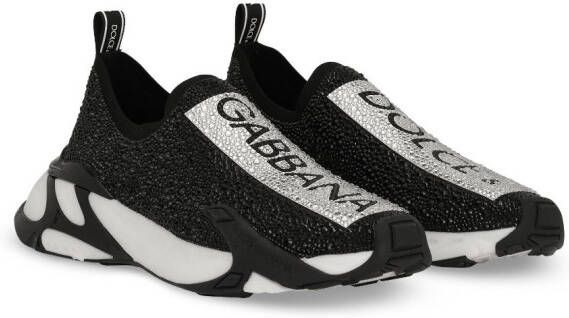 zwart verfraaid met kristallen logoprint op de voorkant slip-on stijl lusje met logo bij de hiel platte rubberen zool Dit item valt klein - neem een maat groter.