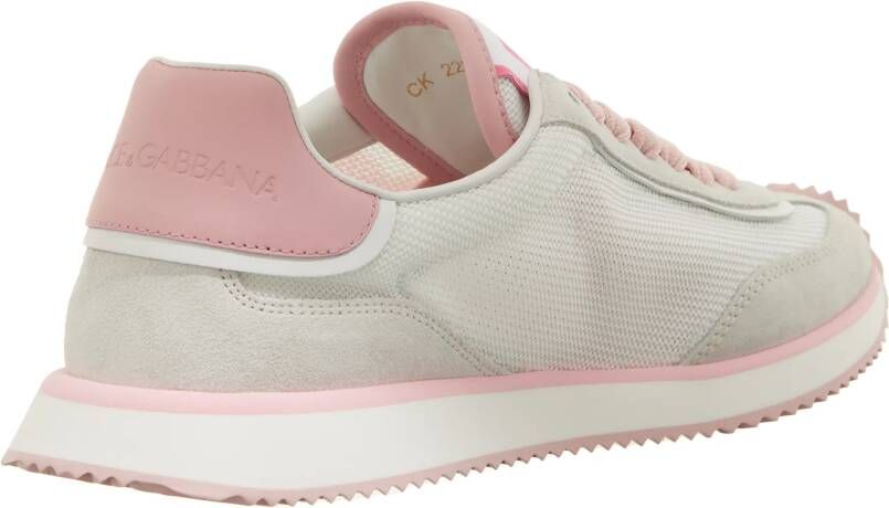 Stap in stijl met de chique witte en roze sneakers van Dolce & Gabbana van kalfsleer. Ontworpen met een versterkte neus en vetersluiting, bieden deze trendy sneakers comfort en elegantie, perfect voor elke gelegenheid. Upgrade je schoenencollectie!