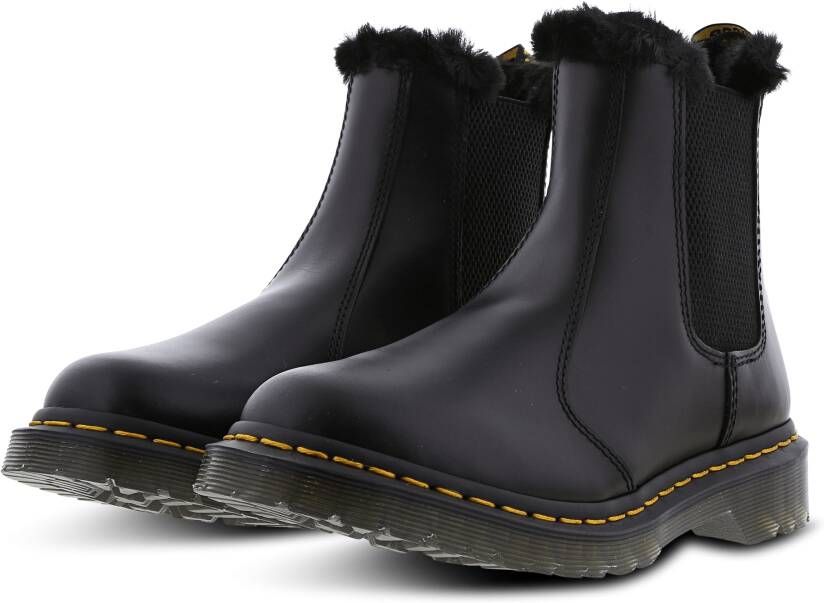 Dr. Martens '2976 Leonore' laarzen. Zwarte, lederen laarzen die al sinds de jaren '70 worden vervaardigd. Gevoerd met Warm Wair, dat gemaakt is van keurig geselecteerde materialen. Winter-proof, slijtvast en warm. Voorzien van stoere zool, gewaxt aniline leder - Atlas, satijn, glans afwerking. Versierd met gele, gescripte hiel lus en gele welt stiksel. Maat & pasvorm: True to size Materiaal: Bovenwerk: 70% Leer 30% Elastiek; Binnenwerk: 90% imitatiebont / 10% textiel; Zool: 100% PVC Materiaal Product Stijl ID: 26332021 Details: - Type: enkellaarzen - Hakken hoogte: platte schoenen - Kleur(en): zwart - Patroon: effen - Shoe material: leather - Stijl: bohemian, bescheiden, punk - Gelegenheid: winter Deze beschrijving is automatisch vertaald.