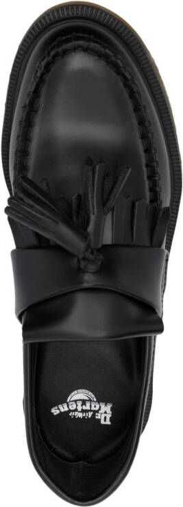 Zwart, kalfsleer, kwastjesdetail, ronde neus, slip-on stijl, leren binnenzool met logo en rubberen zool.