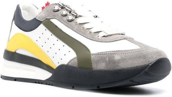 Wit, veelkleurig, kalfsleer, sude vlakken, zijstreep, logopatch op de tong , geperforeerd detail, ronde neus, veters aan voorkant, binnenzool met merk en platte zool.