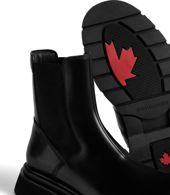 black calf leather patent finish logo at the sole elasticated panelling ankle-length round toe chunky sole